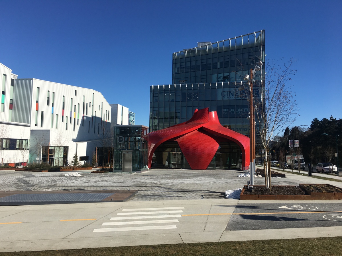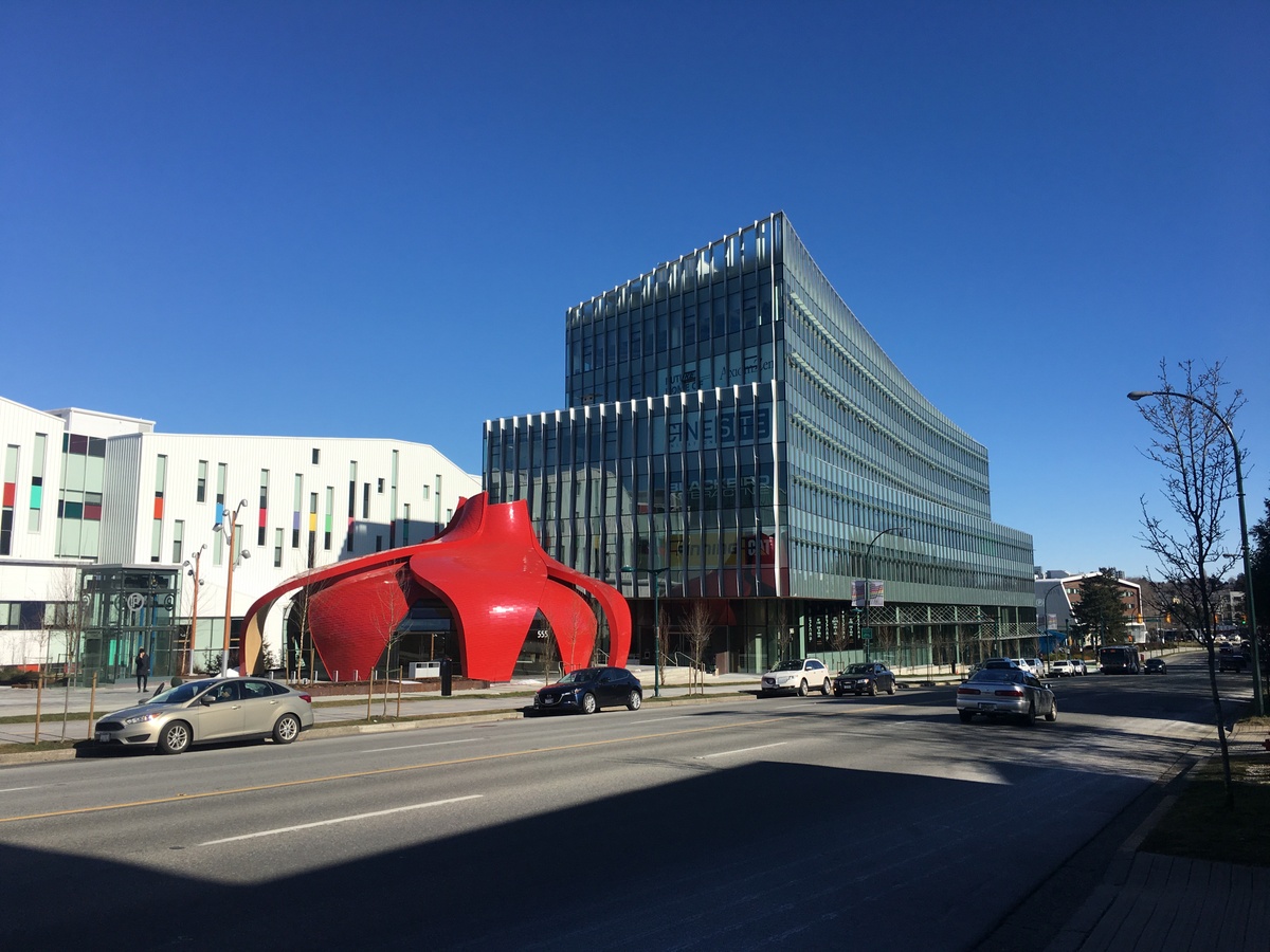The Great Northern Way redevelopment area is a former industrial site, previously owned by Finning. Established in 1933 in Vancouver, Finning is the world’s largest Caterpiller dealer, providing parts and service for equipment for the mining, construction, petroleum, and forestry industries. Finning donated the land in 2001 to Great Northern Way Trust, which is overseen by UBC, BCIT, SFU and Emily Carr University, to be used for education and innovation purposes.