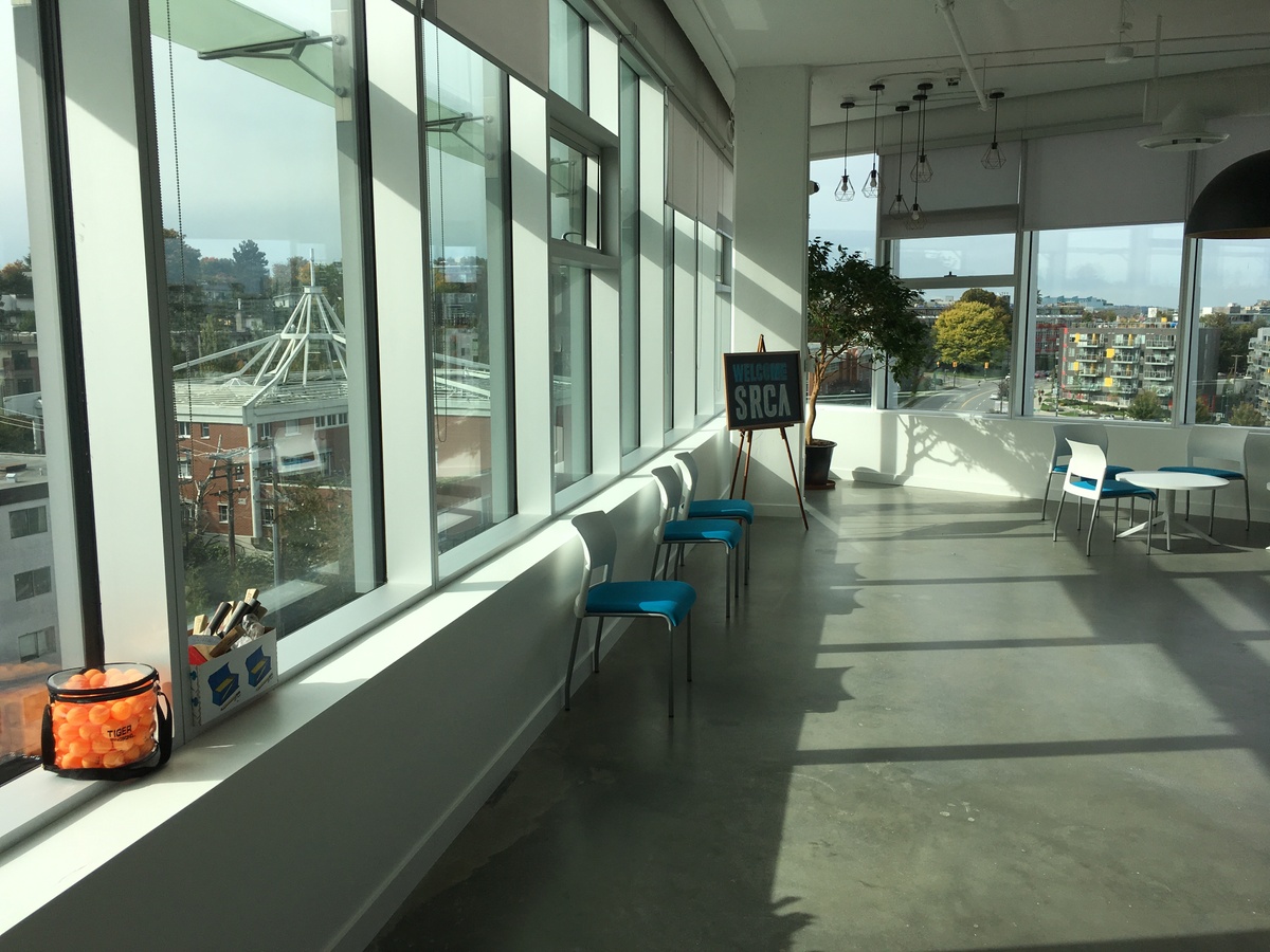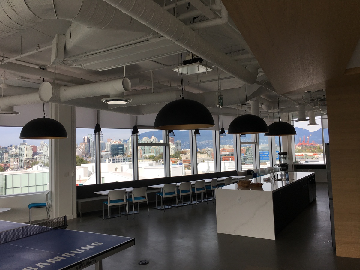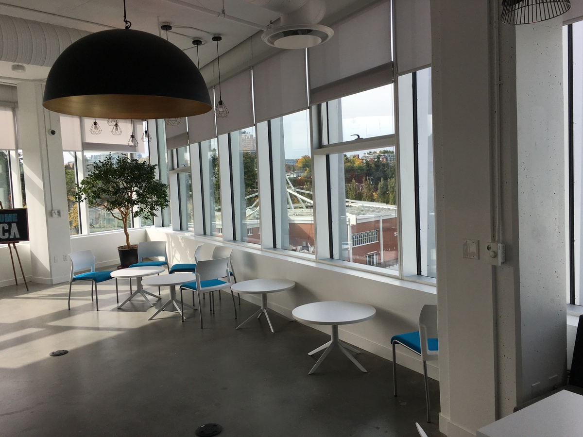 565 Great Northern Way uses an efficient hydronic mechanical system that allows for simultaneous heating and cooling. The mechanical system is connected to the City of Vancouver’s Neighbourhood Energy Utility which captures waste heat from sewage and reuses it to provide heated water. As a long and narrow building, natural light emanates throughout, reducing the need for artificial light. Lights are on daylight and occupational sensors, minimizing unnecessary use. To manage heat from direct sunlight the building is equipped with external solar shading. This reduces the cooling load by shading sunlight when it is most likely to heat up indoor spaces. Further energy efficiencies are achieved through the use pf improved exterior wall and roof insulation, and a triple-glazed curtain wall with low emissivity coating.
