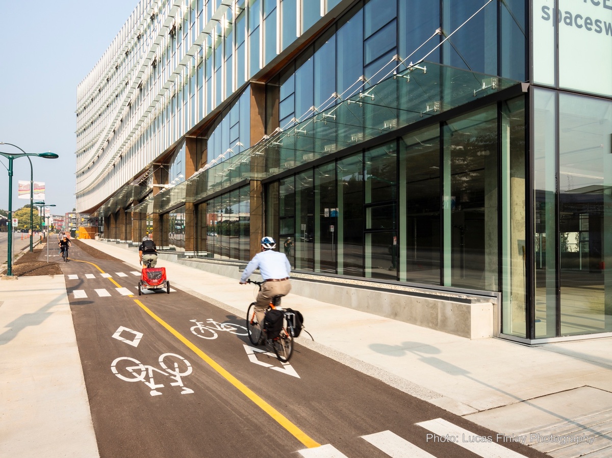 The site is bounded on one side by Great Northern Way, a major East-West traffic route. Central Valley Greenway, a major cycling route that connects to the Vancouver bike grid and continues out to Surrey, runs along the south side of the building providing excellent cycling access.