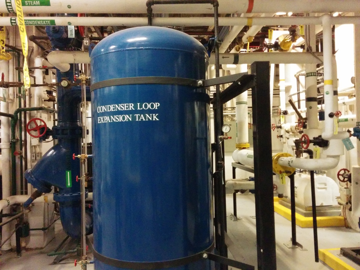 The condenser pump circulates condenser water to the heat pump loop and runs at a constant speed. A variable speed drive would greatly reduce the pumping power of this 60 HP-rated pump, when loads were low.